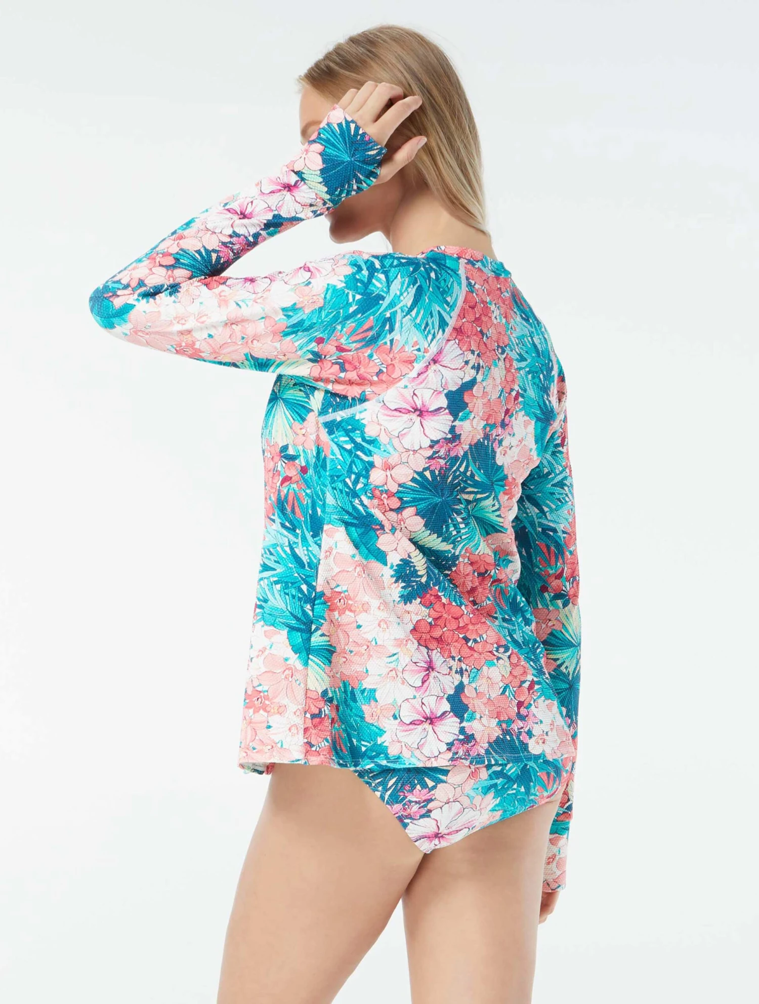 Keep up with your active lifestyle around the water with the Beach House Swim Mary Relaxed Fit Zip Front Rash Guard. This stylish design features a tropical inspired floral print in our new soft textured pique fabric for a flattering swimwear piece. Designed to be worn over your swim top, this sun guard provides extra coverage from the sun. Beach House swimwear is designed with high-end fabrics that bend with you for extra comfort, easy fit and shape retention.